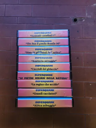 9 vhs con registrazioni rai di documentari del programma Superquark, condizioni ottime AFRICA SELVAGGIA GRANDI CACCIATORI LA REGINA CHE UCCIDE LE PIETRE MILIARI DELLA NATURA CUCCIOLI DEL GHIACCIO AUSTRALIA SELVAGGIA BIANCHI PREDATORI DELL'ARTICO SHO SAN IL PANDA ANIMALI CANNIBALI ?