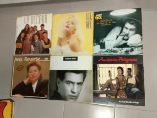Raccolta di vinili musicali. - La Década - Ole Ole - Manolo Tena - Amistades Peligrosas - Ana Reverte - Un pinguino nel mio ascensore