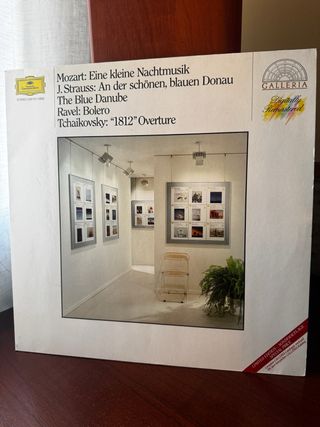 Collezione di musica classica con opere di Mozart, J. Strauss, Ravel e Tchaikovsky. Copertina in perfetto stato, vinile mai utilizzato. Contiene: - Mozart: Eine kleine Nachtmusik - J. Strauss: An der schönen, blauen Donau (Il Danubio Blu) - Ravel: Bolero - Tchaikovsky: 1812 Overture - Edizione Galleria, digitalmente rimasterizzata. Acquisto minimo 5 euro.