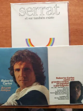 Lote di 3 LP originali: • Joan Manuel Serrat – El sur también existe • Roberto Carlos – Amante Antigua • Roberto Carlos – Grandes éxitos en español y portugués Musica melodica e d'autore, essenziale per i collezionisti di canzone spagnola e ballata latina.