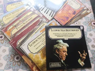 Collezione di vinili dei Grandi Compositori. Include opere di Frédéric Chopin, Felix Mendelssohn, Franz Schubert e Ludwig van Beethoven. Registrazioni dell'Orchestra Filarmonica di Berlino diretta da Herbert von Karajan. Formato STEREO.