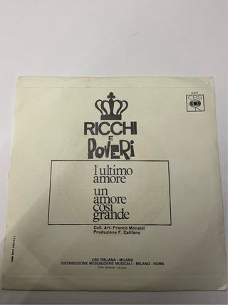Disco in vinile 7 pollici dei Ricchi e Poveri. - Titolo: L'Ultimo Amore - Etichetta: CBS - Numero di catalogo: 3417 Copertina con lievi segni di usura disco in buonissino stato lievi segni leggeri nessun segno profondo funziona perfettamente Dai un occhiata alla mia collezione ci sono molti vinili Spedizione veloce imballo solido