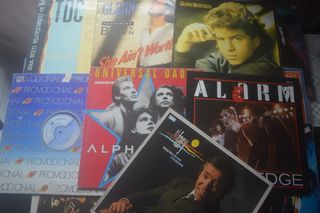 Lote di 40 maxis in vinile con una selezione di generi dance, pop e rock. - Include titoli come She Ain't Worth di Glenn featuring Bobby Brown. - Include anche Universal Dad di Alph. - E Alarm di Alarm. - Vari dischi promozionali. - Include un vinile di Rita Marley.