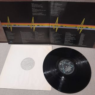 Questo è l'iconico album The Dark Side of the Moon dei Pink Floyd. 1 edizione, completa ed 73 Spagna. Include i testi di tutte le canzoni. Design classico con prisma e grafico del battito. Edizione in vinile.