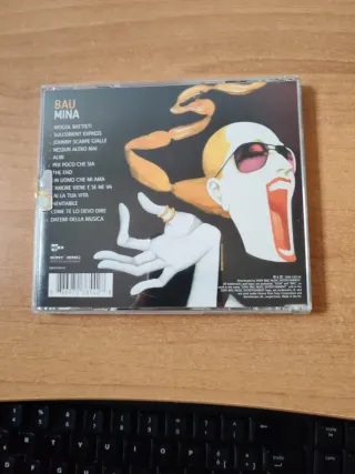 CD musicale di Mina, intitolato BAU. - Copertina con grafica distintiva. - Testo MINA presente sulla copertina. Il box esterno risulta essere danneggiato