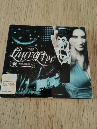 CD Laura Live di Laura Pausini, che documenta il suo World Tour. - Copertina con immagine della cantante e dettagli del concerto. - Etichetta Warner Music presente.