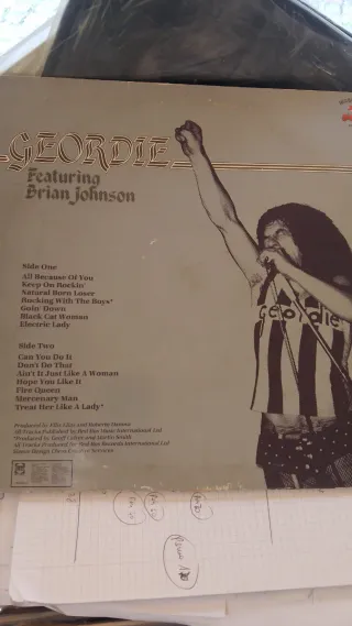 Vinile dei Geordie con la partecipazione di Brian Johnson. - Copertina con immagini della band. - Testo Geordie in rilievo.