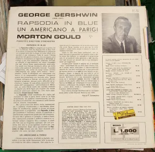 Disco in vinile Rapsodia in Blue di George Gershwin, con Un Americano a Parigi. - Etichetta: RCA Victorola - Codice: KV 107 (VIC 1125) - Direttore d'orchestra: Morton Gould