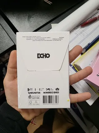 Album Echo di Jin dei BTS, versione Weverse. Scatola - Messaggio Scheda - Libro di cartoline (16 pagine) - Carta dei testi - QR Scheda - Manuale d'uso - Scheda Pin - Distintivo Pin - Foto tessera