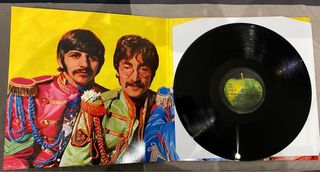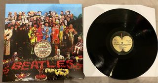 Vinile dei Beatles, Sgt. Pepper's Lonely Hearts Club Band. - Copertina iconica con la band e varie personalità. - Disco in vinile nero.