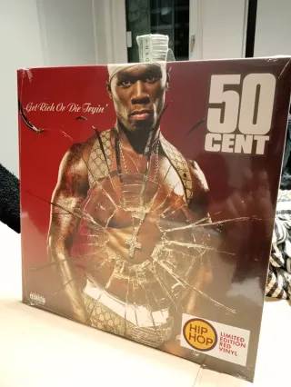 Vinile Get Rich Or Die Tryin' di 50 Cent. - Edizione limitata in vinile rosso. - Copertina con design Hip Hop. - Tiraggio molto limitato