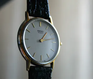 ■ Seiko Quartz ● Cassa in acciaio da circa 33mm design elegante e minimale ● Movimento al quarzo preciso, funziona perfettamente ● Cinturino originale Seiko in pelle nera ● Quadrante silver con indici e sfere dorati ● Vetro perfetto, nessun graffio visibile ● Unisex