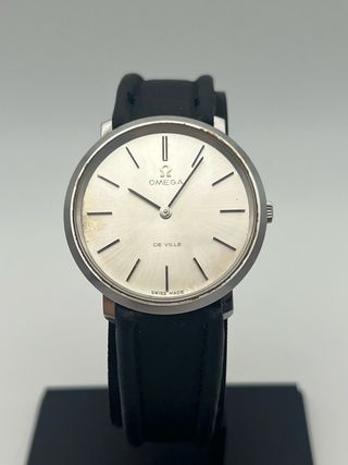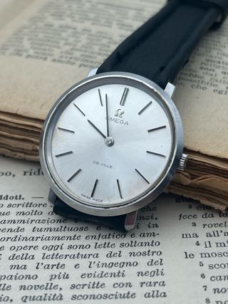 Omega de ville quartz, perfettamente funzionante, cassa 33mm, calibro 1365, cambio ora e minuti a pressione, cinturino generico, cassa molto rara