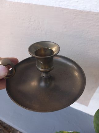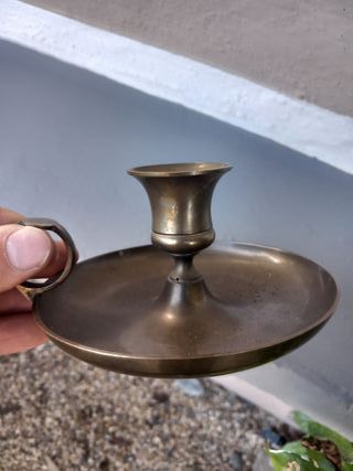 Antico candelabro in ottone con manico