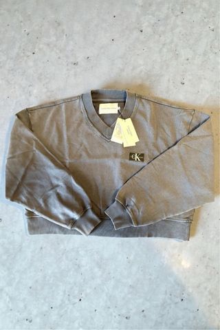 Felpa Calvin Klein da donna, nuova con cartellino. - Scollo a V. - Logo CK sul petto. - Maniche lunghe.
