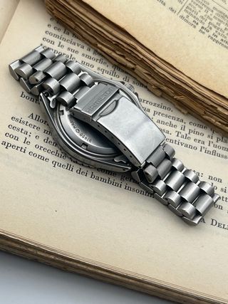 Omega seamaster quarzo, cassa 35mm esclusa corona, cinturino omega e fibbia omega, perfettamente funzionante, particolare movimento con cambio minuti a pulsante e cambio ora a corona