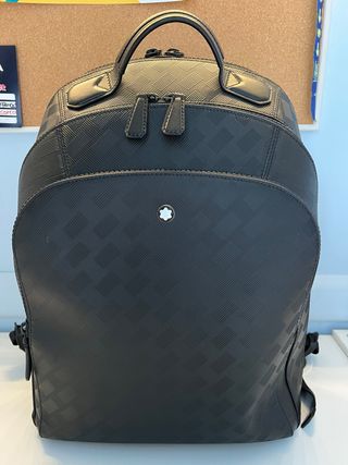 Zaino MontBlanc in pelle nera, con un design elegante e funzionale. - Tre scomparti principali. - Logo MontBlanc in rilievo sul davanti. - Manico superiore e spallacci regolabili.