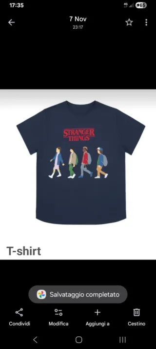 Tshirt blu 100% cotone, con certificazione "Fairly Made" e "Oeko test made in Green", della fantastica serie Netflix "Stranger Things" E si usa anche la scatola...il tubo di cartone diventa un amplificatore del telefono che si appoggia sul coperchio! Ho anche la taglia S/M