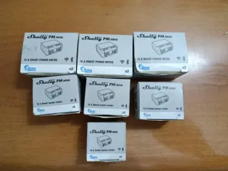 Vendo 7 confezioni misuratori di potenza intelligenti Shelly PM MINI. 6 confezioni da 2, 1 confezione da 1. - Modello: Shelly PM MINI - Capacità: 16 A - Quantità: 13 pezzi