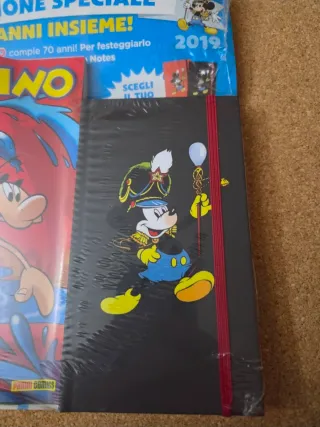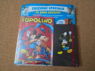 Numero speciale di Topolino - Edizione Speciale 2019 "70 anni insieme", dedicato al 70° anniversario dello storico settimanale Disney. Confezione sigillata, completa di quaderno/notes esclusivo a tema Topolino in abbinamento, ancora nuovo e mai utilizzato. Edizione da collezione perfetta per appassionati Disney, collezionisti e amanti dei memorabilia ufficiali. Prodotto originale Panini Comics, ideale come regalo o pezzo da collezione. #topolino #disney #edizionespeciale #70anni #collezionismo #disneycollection #mickeymouse #fumetti #paninicomics #memorabilia #disneyitalia #topolinocollection
