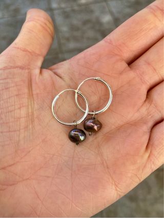 Orecchini in argento 925 marchiato con pendenti di perle di fiume scure naturali. Nuovi.