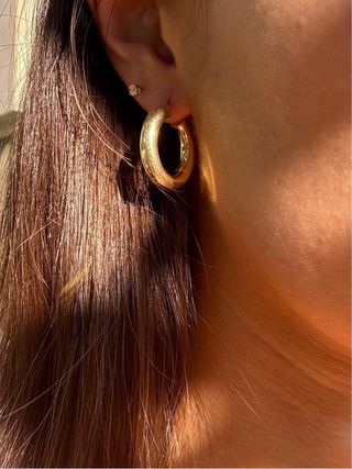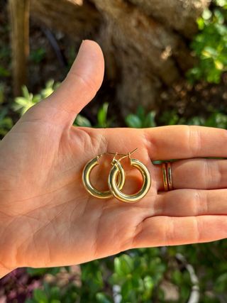 orecchini a cerchio in argento 925 placcato oro punzonato nuovi, mai indossati molto luminosi vv