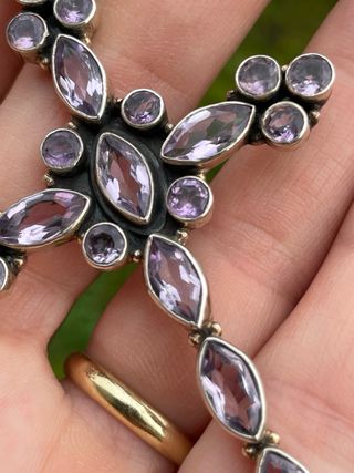 grande ciondolo croce con ametista trasparente, massiccia, cintage, argento testato perche’ il punzone e’ poco visibile