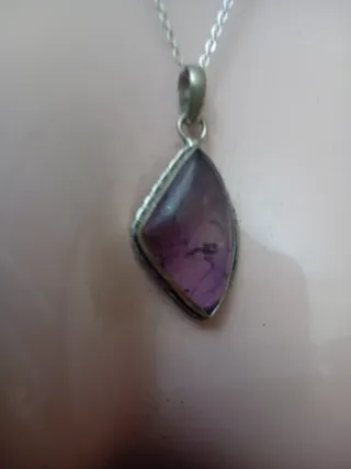 Elegante collana con pendente in fluorite naturale. - Materiali: Argento e acciaio. - Pietra: Fluorite naturale sfaccettata.