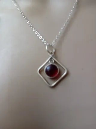 Elegante collana con ciondolo in argento. Catena acciaio inossidabile - Pietra centrale: granato rosso. - Montatura in argento 925 lavorato.