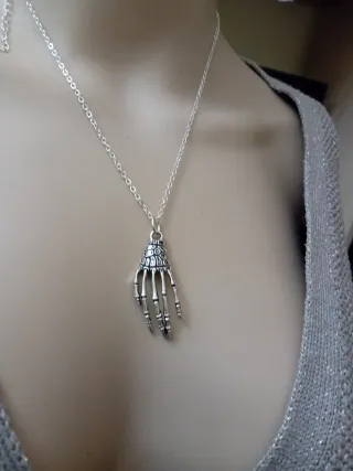 Collana con ciondolo a forma di mano scheletro. - Materiale: acciaio. - Design unico e dettagliato.