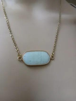 Elegante collana con una pietra naturale di amazzonite incastonata in una montatura color oro. - Pietra: Amazzonite naturale - Materiale: Acciaio con finitura oro