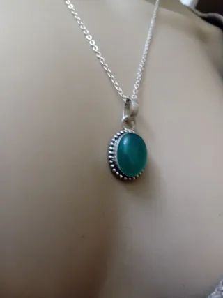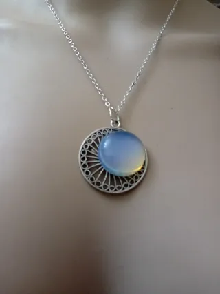 Elegante collana con pendente in argento e opale naturale. SECONDA MANO - Pietra opale naturale con sfumature iridescenti. - Montatura in argento 925. - Design raffinato con bordo perlinato.