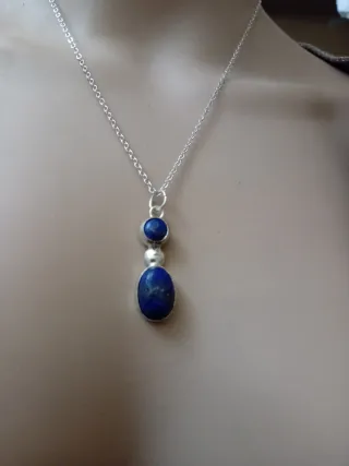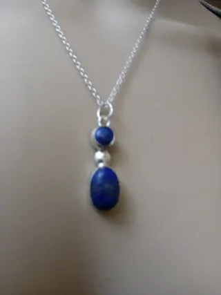 Elegante collana con pendente in lapislazzuli naturale e dettagli in argento. - Pietra principale: lapislazzuli naturale. - Materiale: argento e acciaio