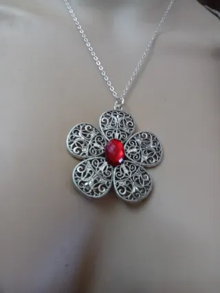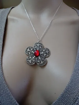 Collana fiore rosso e argento