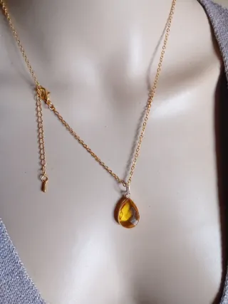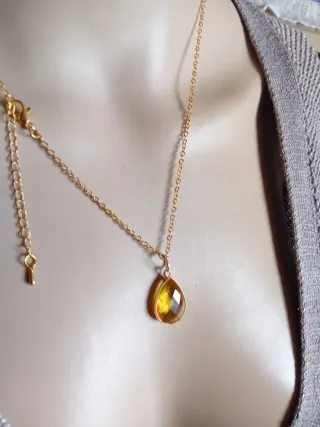 Elegante collana con pendente a goccia. - Pietra: Topazio naturale - Materiale: Acciaio dorato - Forma del pendente: Goccia