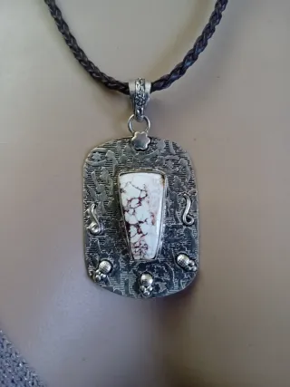 Collana argento con pietra bianca e venature