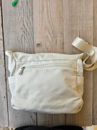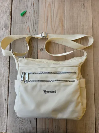 Borsa a tracolla Enrico Coveri di colore panna. - 4 scomparti con zip e due tasche laterali. - Tracolla regolabile.