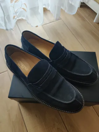 Scarpe da uomo marca Gutteridge. Elegante in velluto scamosciato, colore blu numero 45. Indossata una volta per un paio d'ore. Materiale pelle.