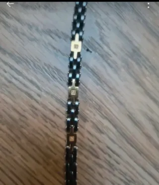 Elegante bracciale da uomo con un design unico. - Dettagli in oro. - Finitura nera lucida,impreziosito da tre diamantini.