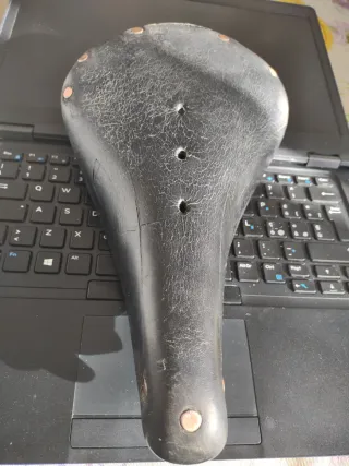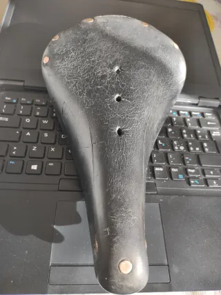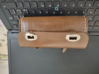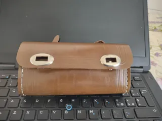 Borsello porta attrezzi per bicicletta, realizzato in pelle marrone. - Chiusura con fibbie metalliche. - Cuciture a vista bianche. - Design classico.