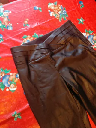 Eleganti pantaloni in similpelle. - Vita alta con dettaglio plissé. - Chiusura laterale con zip. - Vestibilità comoda leggermente elastici. Vendo a prezzo ridotto perché maca il gancino della cerniera, facilmente sistemabile. Vedi foto