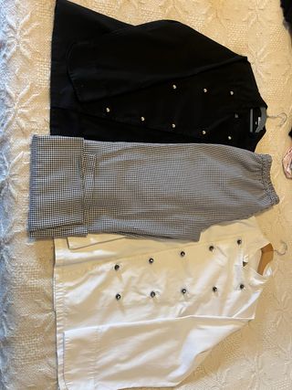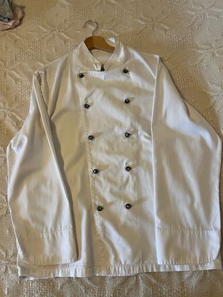 Set di due giacche da cuoco, una nera e una bianca. - Chiusura con bottoni. - Maniche lunghe.con pantaloni e cappello