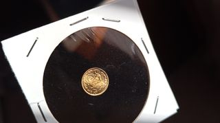 Moneta in oro dell'Impero Messicano, anno 1865, con l'effigie di Massimiliano. - Peso: 0.41 grammi. - Diritto: Ritratto di Massimiliano I del Messico. - Rovescio: Aquila imperiale messicana.