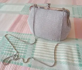 Elegante pochette marrone, perfetta per occasioni speciali. Dotata di una delicata catena dorata per essere indossata a spalla o a mano. - Decorazione floreale ricamata. - Chiusura a scatto. - Fodera interna. Elegante pochette argentata, ideale per completare un look da sera. La sua texture scintillante cattura la luce. - Texture a strass. - Catena sottile color argento. - Chiusura a scatto.