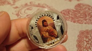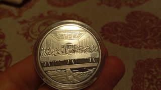 Moneta in argento placcato con la rappresentazione dell'Ultima Cena. La moneta è in condizioni FDC (Fior di Conio). - Design dettagliato dell'Ultima Cena. - Finitura argentata lucida.
