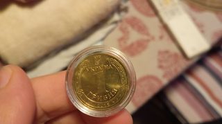 Moneta con finitura lucida e placcatura in oro. - Finitura lucida