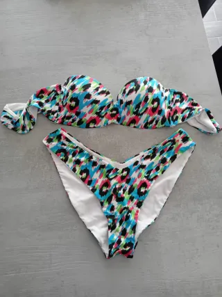 Costume bikini con fantasia animalier colorata. - Top a fascia - Slip sgambato