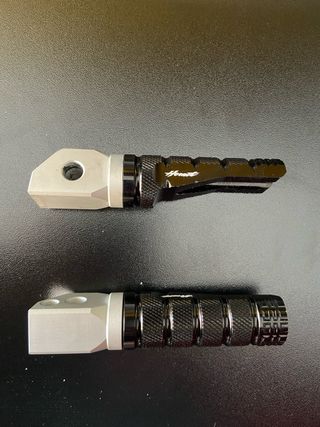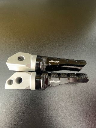 Pedaline per Honda Hornet CB 750. - Materiale: alluminio e gomma. - Colore: nero e argento. - Design antiscivolo per una presa sicura.