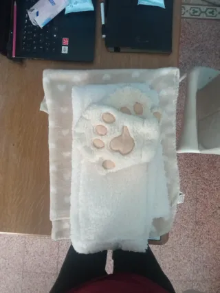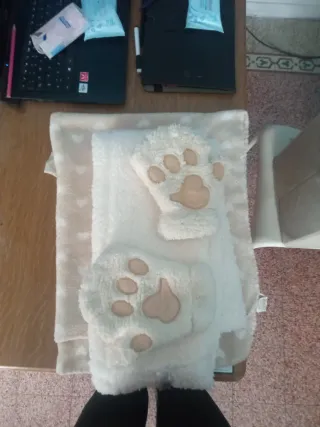 Set composto da guanti a zampa di gatto, sciarpa e coperta, tutti realizzati in morbido materiale. - Guanti con design a zampa di gatto. - Sciarpa coordinata. - Coperta soffice e confortevole.
