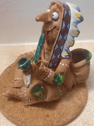 Idea regalo 🎁Statuetta artigianale in terracotta, raffigurante un indiano con pipa. Porta incenso in ceramica Midene Rainmaker, statuetta nativo americano decorazione per la casa Prodotto da Mideneartstudio per ceramica Valli - Altezza cm 13,5 -Forgiato e dipinto a mano - Dettagli colorati sulla veste e sul copricapo. - Pipa in ceramica verde e blu. - Base in sughero non inclusa -Regalo 4 coni incenso.